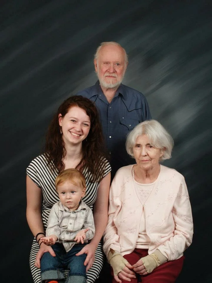 My Granddad, my Granny, Rónán, and I when he was just a wee little thing and hadn't yet learned to sass me